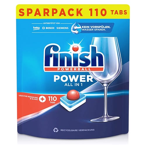 Bei Amazon bekommt ihr aktuell das 110er-Pack Finish Power All in 1 Spülmaschinentabs für nur 11,04€ inkl. Prime-Versand.