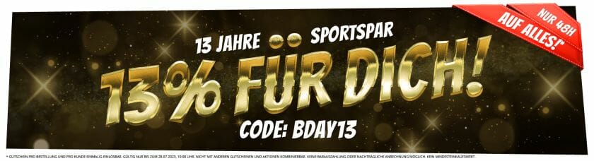 Anlässlich zum 13. Geburtstag von SportSpar.de gibt es gerade 13% auf Alles.