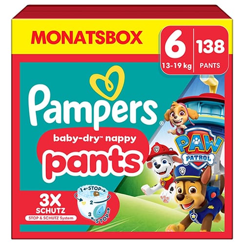 Amazon verkauft aktuell den 138er-Pack Pampers Windeln Paw Patrol Pants in Größe 6 für nur 45,79€ inkl. Prime-Versand.