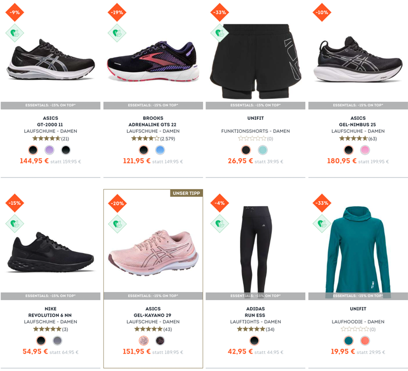 15% Rabatt auf über 1.000 ausgewählte Running Essentials bei SportScheck