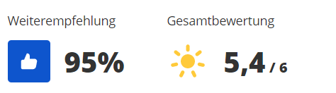 Bei HolidayCheck geben die Besucher 5,4 von 6 möglichen Sonnen.