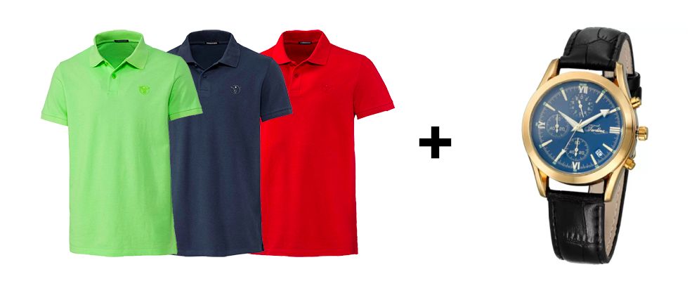 Wer also zufällig neue Poloshirts sucht und auch noch einen Armbanduhr gebrauchen kann, sollte sich das Angebot einmal anschauen.