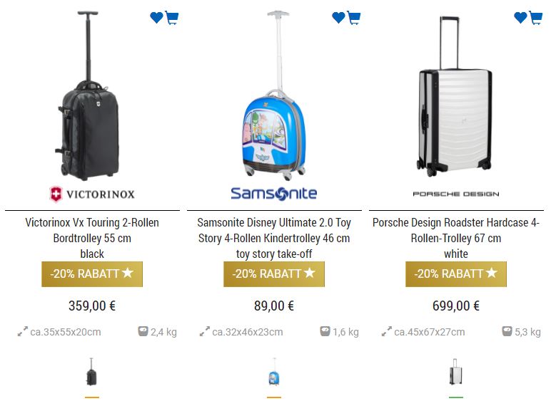 20% Extra-Rabatt auf viele nicht reduzierte Produkte bei Koffer-Direkt