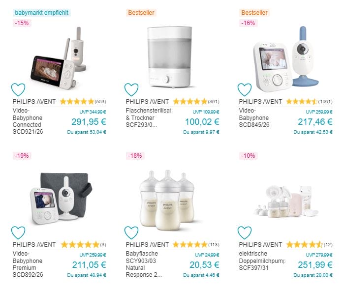 Im Babymarkt bekommt ihr heute 20% Rabatt auf ausgewählte Produkte der Marke Philips Avent.