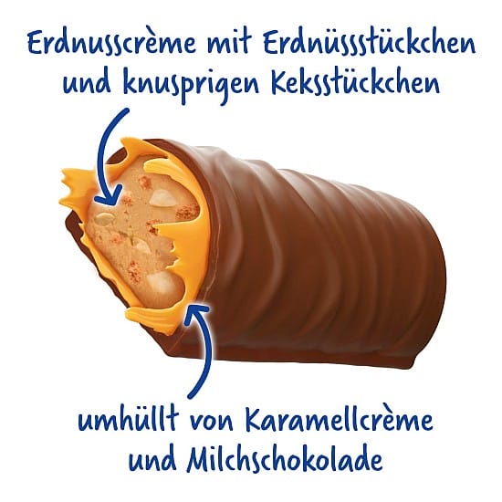 • zarte Karamellcrème und knackige Erdnussstückchen