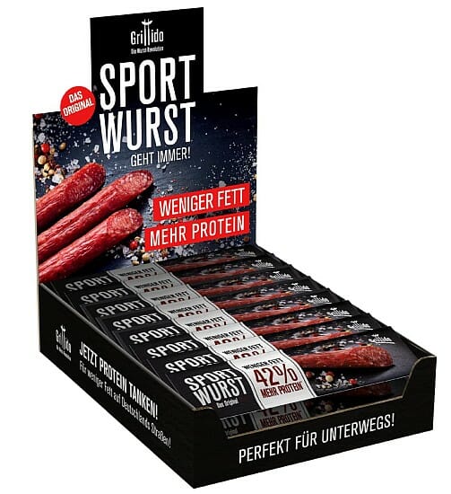 Die herzhafte und proteinreiche Alternative zu Eiweißriegel: Bei Amazon gibt es heute das 25er Pack Grillido Sportwurst Original für nur 14,98€ inkl. Versand.