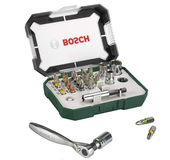 Bei Amazon bekommt ihr heute das 26-teiliges BOSCH Schrauberbit- und Ratschen-Set für nur 13,54€ bei Prime inkl. Versand.