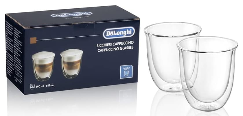 2er-Set DeLonghi DLSC311 Doppelwandige Cappuccino-Gläser für nur 9,90€ (statt 19€) – Prime