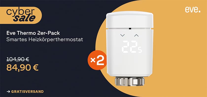 Heute bekommt man bei Cyberport das Eve Thermo Heizkörperthermostat im Doppelpack für nur 84,90€ inkl. Versand.