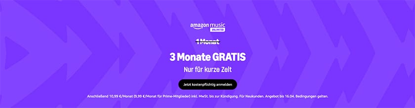 3 Monate gratis Amazon Music Unlimited inkl. HD & 3D-Audio testen (Neukunden)