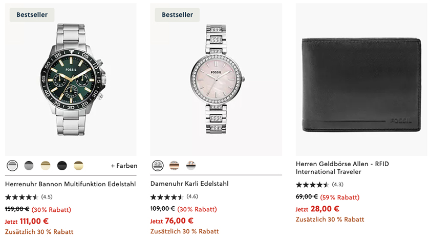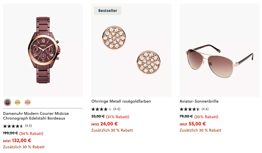 30% Extra-Rabatt im Fossil Outlet mit über 550 ausgewählte Produkte