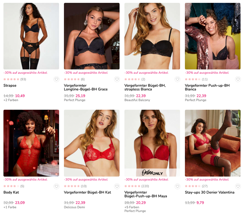 Im Hunkemöller Onlineshop erhaltet ihr aktuell satte 30% Rabatt auf viele Artikel.