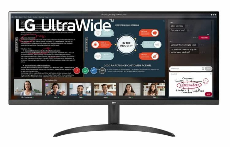 Für nur etwas über 200€ bekommt ihr hier einen richtig großen Monitor mit einer ordentlichen Auflösung von 2.560 x 1.080 Pixeln.