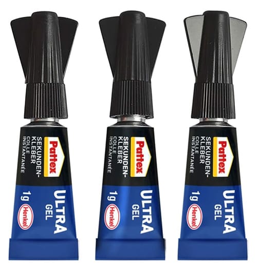 - Praktischer Lieferumfang: 3 Tuben zu je 1 g Pattex Sekundenkleber Ultra Gel Mini Trio, 3 original versiegelte Mini-Tuben, stark & flexibel, lösemittelfrei, Cyanacrylat, farblos