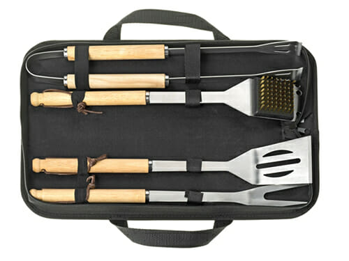 • Lieferumfang: Grillbürste, Pfannenheber, Grillzange, Gabel, Nylontasche, verpackt in schwarzer Nylontasche