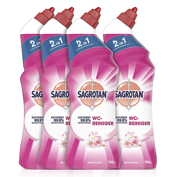 - Lieferumfang: 4 x 750ml WC Reiniger Blütenfrische von Sagrotan / Kraftvolle WC-Reinigung und Desinfektion mit Antischmutzfilm / Stark gegen Bakterien