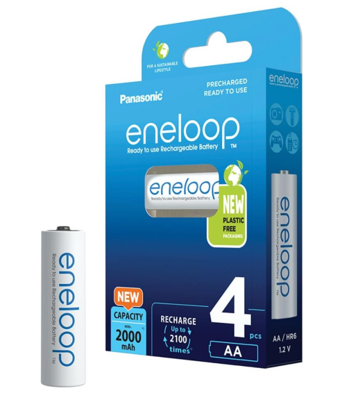 - eneloop mit erhöhter Kapazität (min. 2000 mAh) und umweltfreundlicher Verpackung