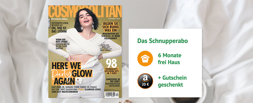 6 Monate (6 Ausgaben) COSMOPOLITAN für 24€ – als Prämie: 20€ Amazon-Gutschein