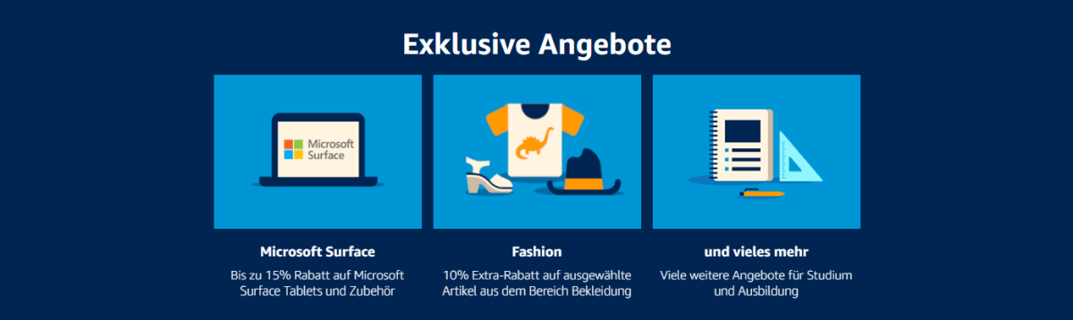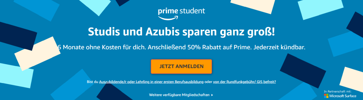 Aktuell kann ich auf der Aktionsseite weder die Surface-Angebote, noch die Amazon Fashion Rabatte für Studenten aufrufen. Das liegt möglicherweise daran, dass meine Prime-Student Mitgliedschaft noch nicht freigeschaltet ist – Welche Deals es genau für Schüler, Studenten und Azubis gibt, packe ich hier rein, wenn Amazon mich endlich freigeschaltet hat.