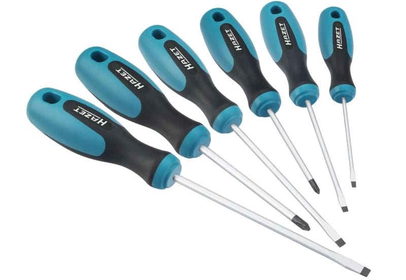 - LIEFERUMFANG: 1x HAZET Schraubendreher-Satz 810/6 | 6 Teile, Abtrieb: Schlitz- und Kreuzschlitz, Schlüsselweite: 0,5 x 3, 0,8 x 4, 1 x 5,5, 1,2 x 6,5, PH1 und PH2, rutschfester 3-Komponenten-Griff