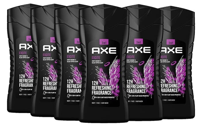 Amazon verkauft aktuell das 6er-Pack mit 6x 250 ml Axe Excite 3in1 Duschgel für 10,52€ im Prime Spar-Abo.