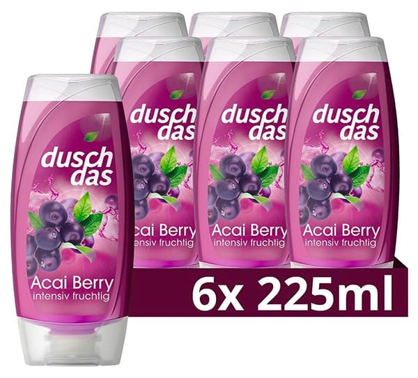 Bei Amazon bekommt ihr zur Zeit 6 Flaschen des Duschdas Acai Berry Duschgels für nur 5,34€ inkl. Prime-Versand.