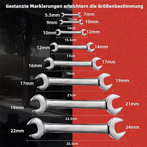 - Das Set enthält 8 Teile, die die gängigsten Größen abdecken, angefangen von 5,5 x 7 mm bis zu 22 x 24 mm.