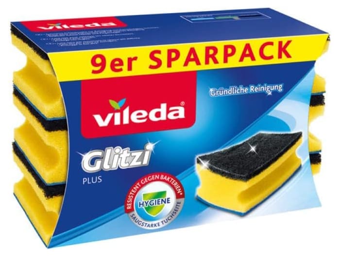 - Der Vileda Glitzi Plus Topfreiniger hat zwei leistungsstarke Reinigungsseiten zum Geschirrspülen und zum Reinigen von Oberflächen