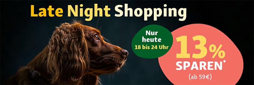 Auch bei Fressnapf gibt es heute Abend eine tolle Aktion: Durch einen Gutscheincode erhaltet ihr zwischen 18 und 24 Uhr sehr gute 13% Rabatt auf das gesamte Sortiment.