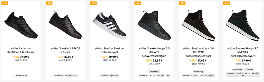Insgesamt stehen über 60 verschiedene Artikel zur Auswahl. Mit dabei sind neben den Trainings- und Laufschuhen auch viele modische Sneakers für Damen und Herren, sodass sich ein Blick in den Sale allemal lohnt.
