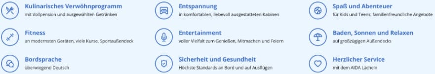 Bei allen AIDA Kreuzfahrten ab/bis Hafen sind folgende Leistungen inklusive: