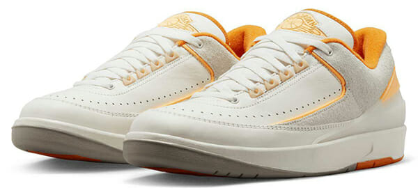 Mit Details wurde bei Kickz leider ein wenig gespart, aber ich denke grundsätzlich sollte klar sein, dass es sich um einen flachen Air Jordan in Weiß/Beige mit orangenen Akzenten handelt. 🙂