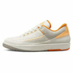 Mit Details wurde bei Kickz leider ein wenig gespart, aber ich denke grundsätzlich sollte klar sein, dass es sich um einen flachen Air Jordan in Weiß/Beige mit orangenen Akzenten handelt. 🙂