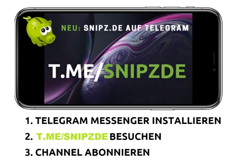 Hier ein Hinweis in eigener Sache: Wer die besten Deals und Schnäppchen per Nachricht auf dem Smartphone empfangen möchste, ist herzlich eingeladen, unseren Snipz.de Telegram Schnäppchen-Channel zu abonnieren.