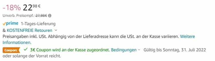 Um auf den Preis zu gelangen, nutzt einfach auf der Artikelseite den 3€ Click-Coupon.