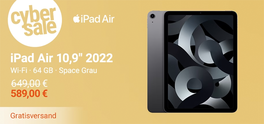 Apple iPad Air (10,9″, 2022, Wi-Fi, 64 GB, Space Grau) für nur 589€ inkl. Versand (statt 636€)