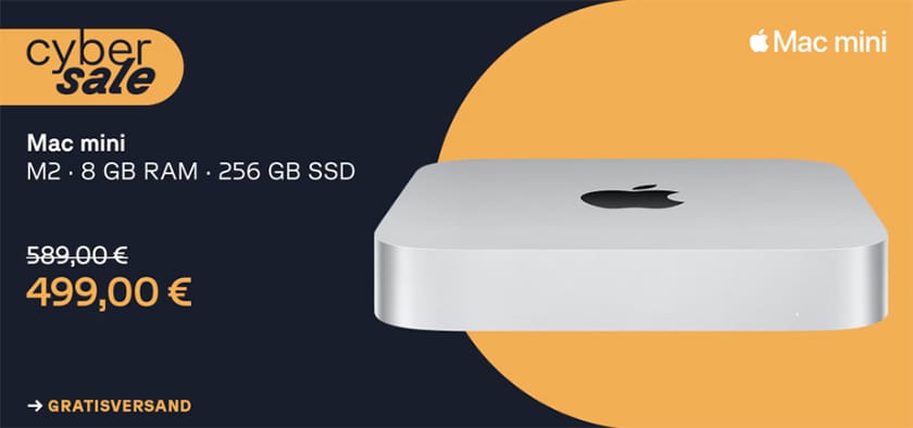 Cyberport verkauft heute im CyberSale den Apple Mac mini aus 2023 mit M2-Prozessor, 8 GB RAM und 256 GB SSD (MMFJ3D/A) für nur 499€ inkl. Versand.