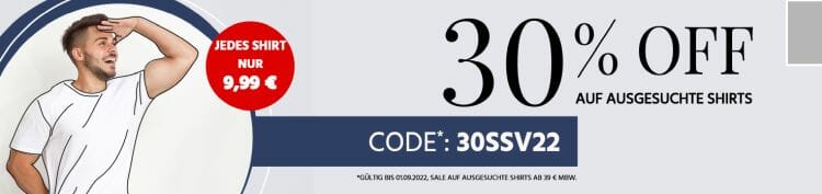 Um den Rabatt zu erhalten, legt ihr die gewünschten Shirts von der Aktionsseite in den Warenkorb und benutzt bei der Bestellung dann den Gutscheincode 30SSV22