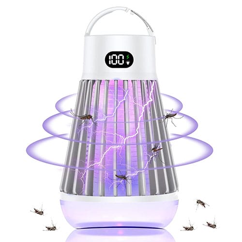 - 2-in-1 Design: Funktioniert als Campinglampe und elektrischer Insektenvernichter, ideal für Outdoor-Aktivitäten. Langlebiger Akku mit bis zu 13 Stunden Beleuchtung oder 11 Stunden Mückenkontrolle.