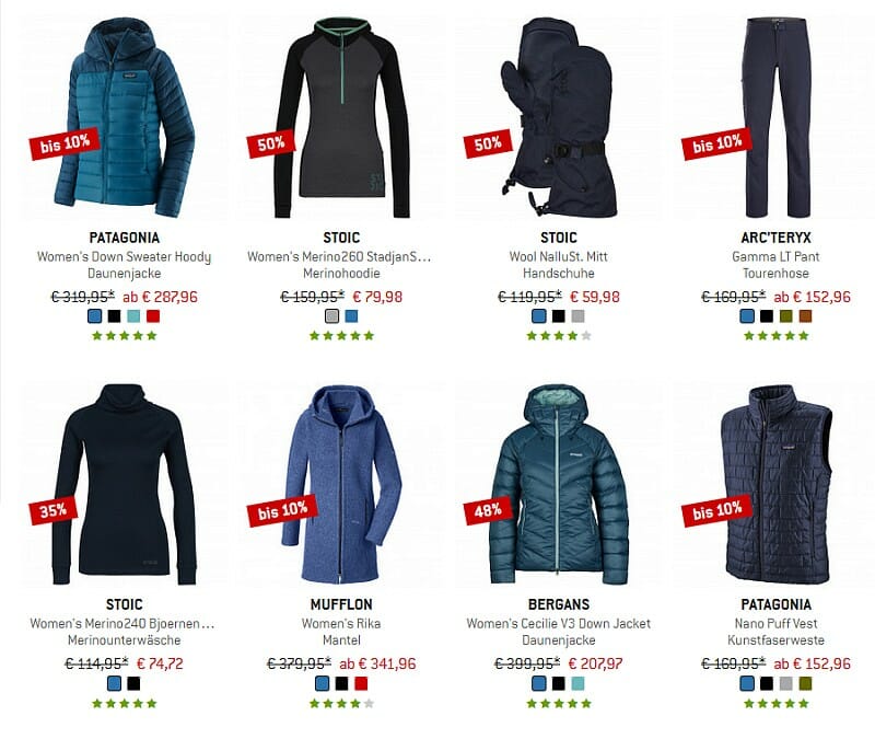 Über 23.000 Artikel aus allen Produktkategorien sind hier zu finden. Neben vielen Jacken und Funktionsbekleidung findet ihr zum Beispiel auch allerlei Accessoires.