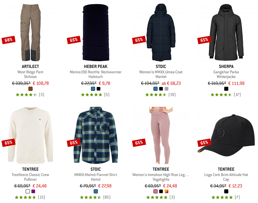 Mit im Sale sind viele tolle Marken wie Stoic, Altra, Vaude und viele mehr. Sowohl für Damen als auch für Herren sind einige interessante Produkte dabei, also am besten einfach mal reinschauen. Ab einem Bestellwert von 50€ entfallen die Versandkosten in Höhe von 2,95€.
