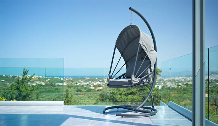 - Stilvoller Hängesessel in Schwarz und Dunkelgrau.