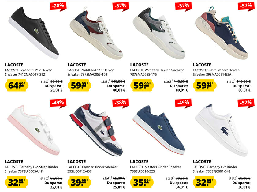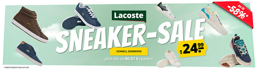 Bei SportSpar läuft aktuell der Lacoste Sneaker Sale mit Rabatten von bis zu 58%!