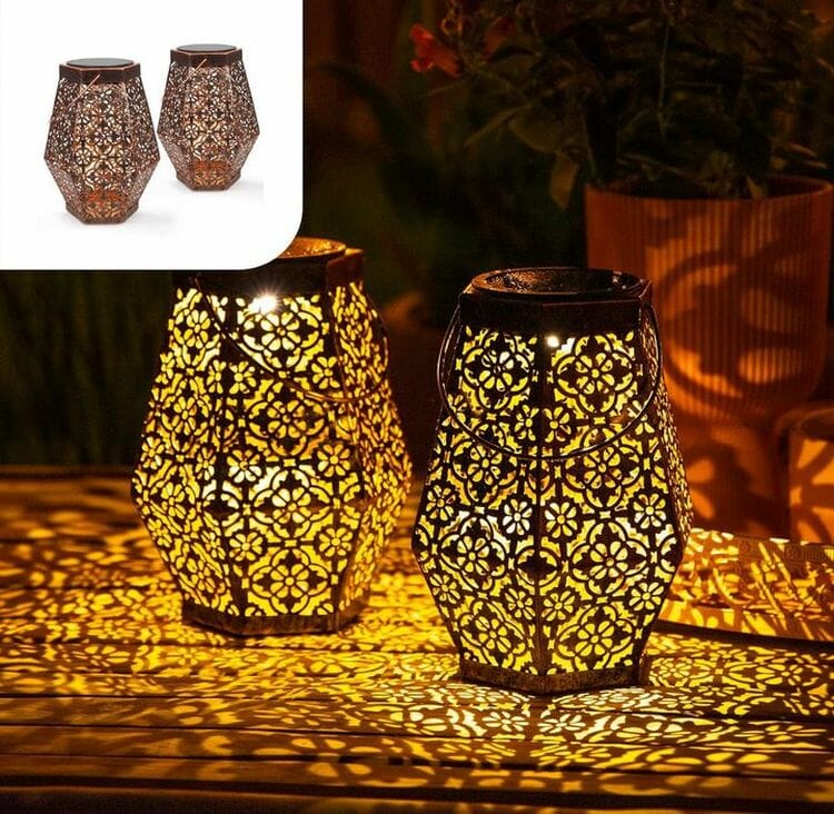 - Das brillante Licht, das durch das ausgeschnittene Muster scheint, macht diese Laternen zu einem echten Blickfang draußen in Ihrem Garten