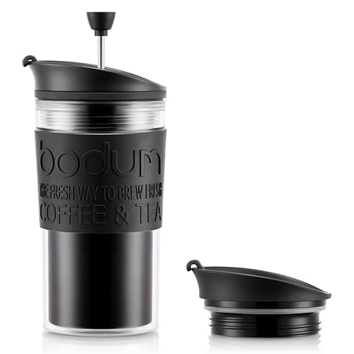 - Bodums typisches French Press System ist mit der Bodum Travel Mug kombiniert, damit Sie auch unterwegs einen genussvollen Kaffee zubereiten und genießen können