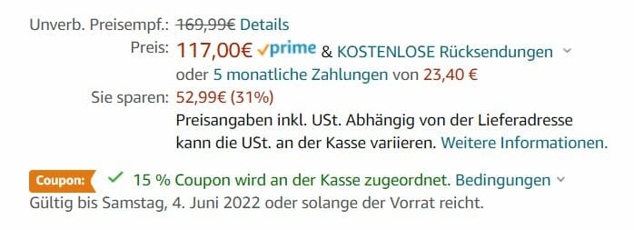 Auf den Preis kommt ihr durch den 15% Click-Coupon auf der Artikelseite.