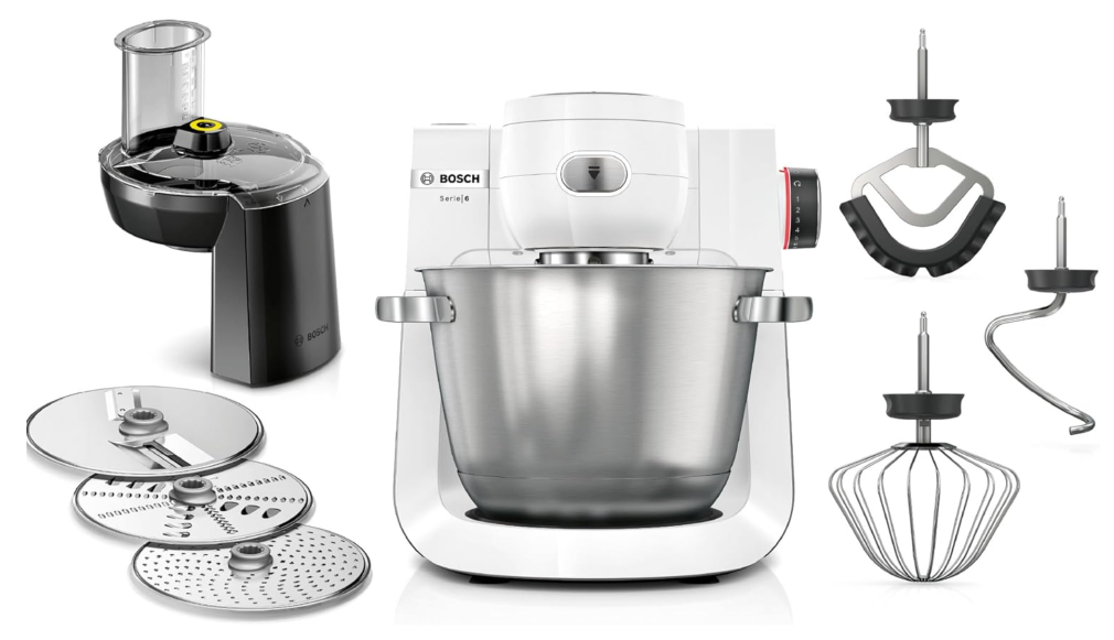 Wer jetzt noch selbst den Teig knetet, hat wohl einfach zu viel Freizeit – Aktuell bekommt ihr die Bosch MUMS6EW13D Serie 6 Küchenmaschine mit 5,5L Edelstahlschüssel für nur 279,83 € inklusive Versand – und das wahlweise bei Amazon oder MediaMarkt.