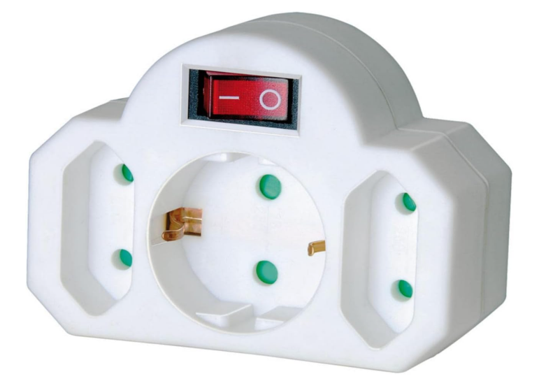 - Adapter mit 1 Schutzkontakt-Steckdose, 2 Euro-Steckdosen mit beleuchtetem Ein/Aus-Schalter einpolig