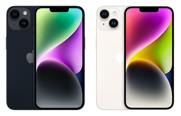 Das iPhone 14 gibt es in den beiden oben gezeigten. Im Preisvergleich kostet das iPhone mindestens 705€ – hier zahlt ihr für den Tarif 24,99€ mtl. und einmalig 199,99€ Zuzahlung. Dazu kommen einmalig 19,99€ Anschlussgebühren. Insgesamt also 819,74€ über 24 Monate.