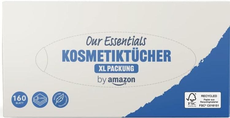 Bei Amazon gibt es derzeit die by Amazon Our Essentials Kosmetiktuchbox 3-lagig XL 160 Kosmetiktücher für nur 1,48€ im Spar Abo